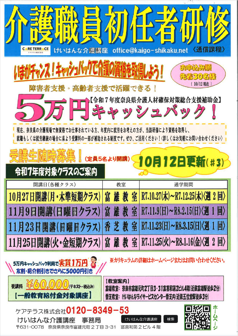 奈良県内での介護職員初任者研修・実務者研修・障がい者支援など養成講座