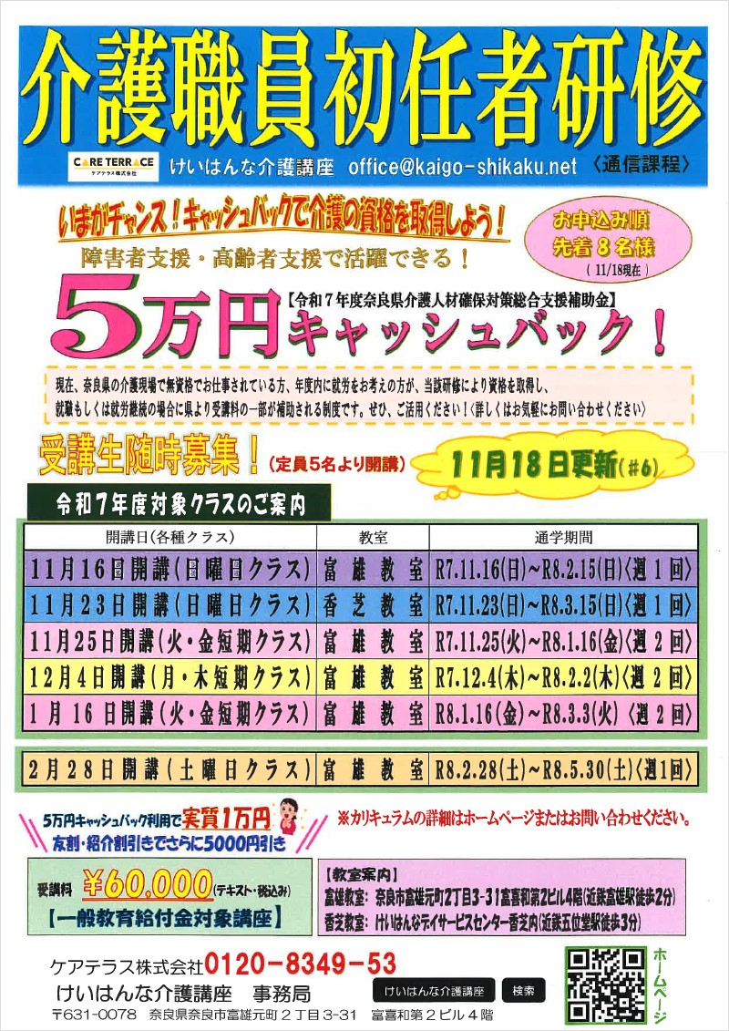 【初任者研修】11月25日クラスも開講決定