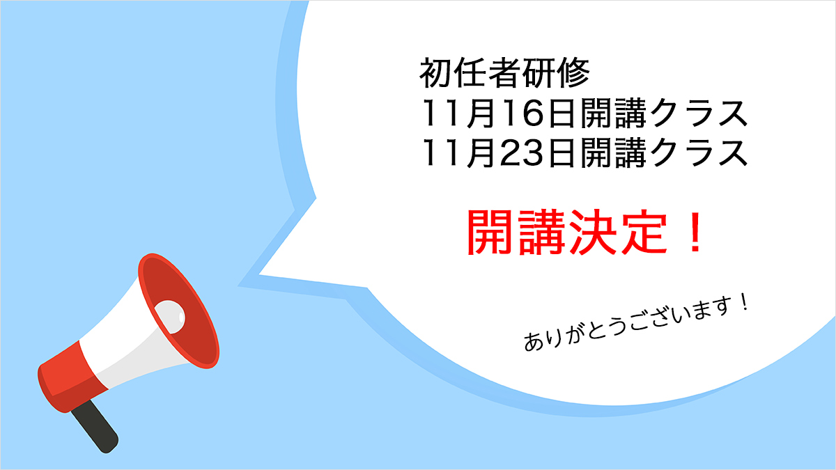 【初任者研修】11月16日クラス・23日クラス開講決定